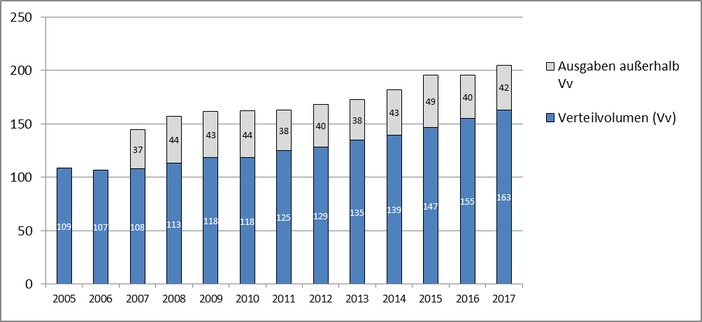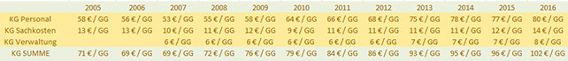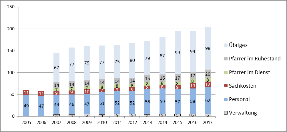 Zum Gemeinde-Anteil muss man noch die Bezüge der Pfarrer zählen sowie deren Pensionen (gehören zum "Anteil außerhalb Vv").