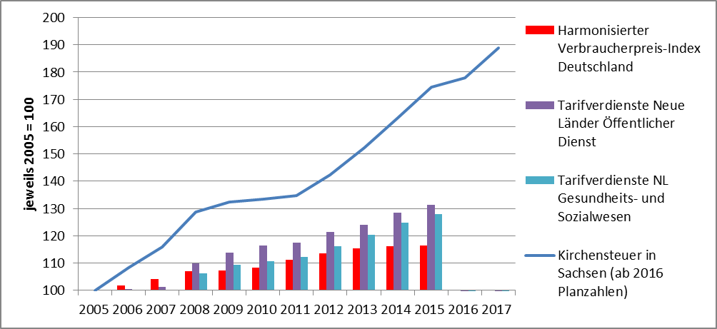 Während die Preise um 16% stiegen und die Gehälter im ÖD um 28%, sind die Kirchensteuern um 63% gestiegen.