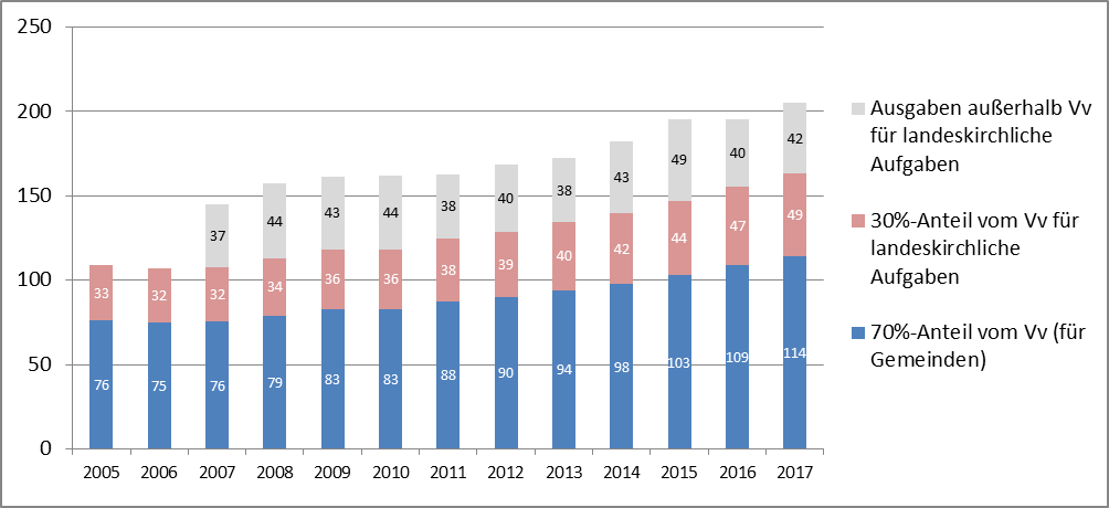 Für die übergemeindlichen Aufgaben der Landeskirche stehen somit der 30%-Anteil vom Vv sowie die übrigen Einnahmen zur Verfügung.