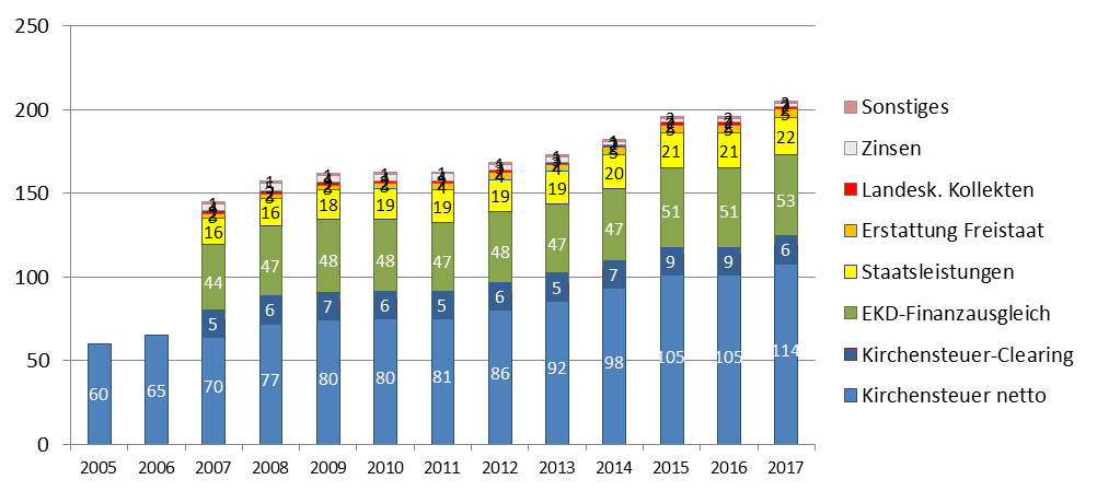 Die Kirchgemeinden haben separate Haushalte mit weiteren Einnahmen (Kirchgeld, Spenden, Pachten, Gebühren usw.).