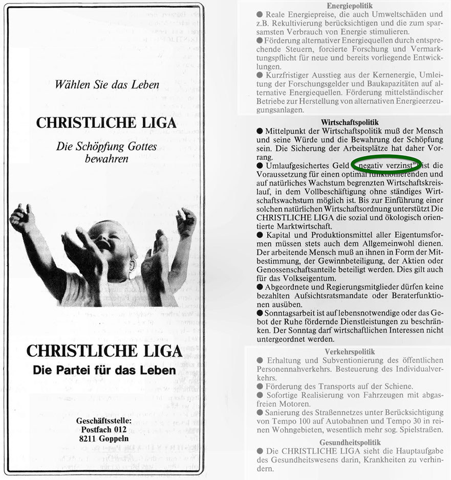 Als ich am 23. Februar 1990 den Satz vom "umlaufgesicherten Geld" ins Programm einer eben von mir mitgegründeten Partei schrieb, war ich der Zeit also viel zu weit voraus...