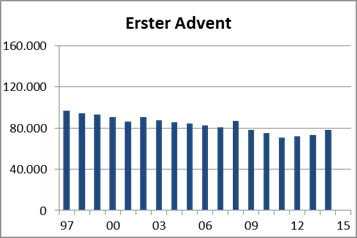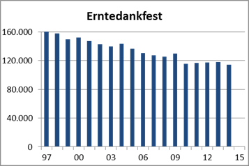 Nach Heilig Abend ist dies der am besten besuchteste Sonntag. Mit 120 von 800 Tausend kommt noch etwa jedes 6. Mitglied.