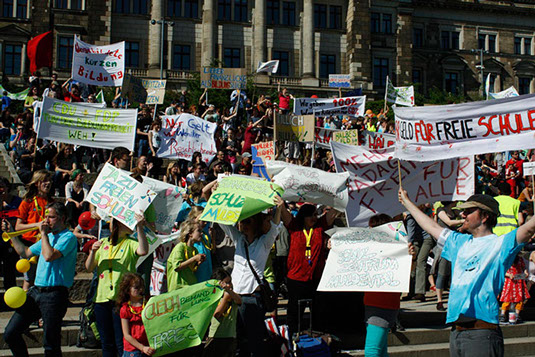 Etwa 1.000 Eltern, Lehrer und Schüler versammelten sich zwischen Kultusministerium und Elbe